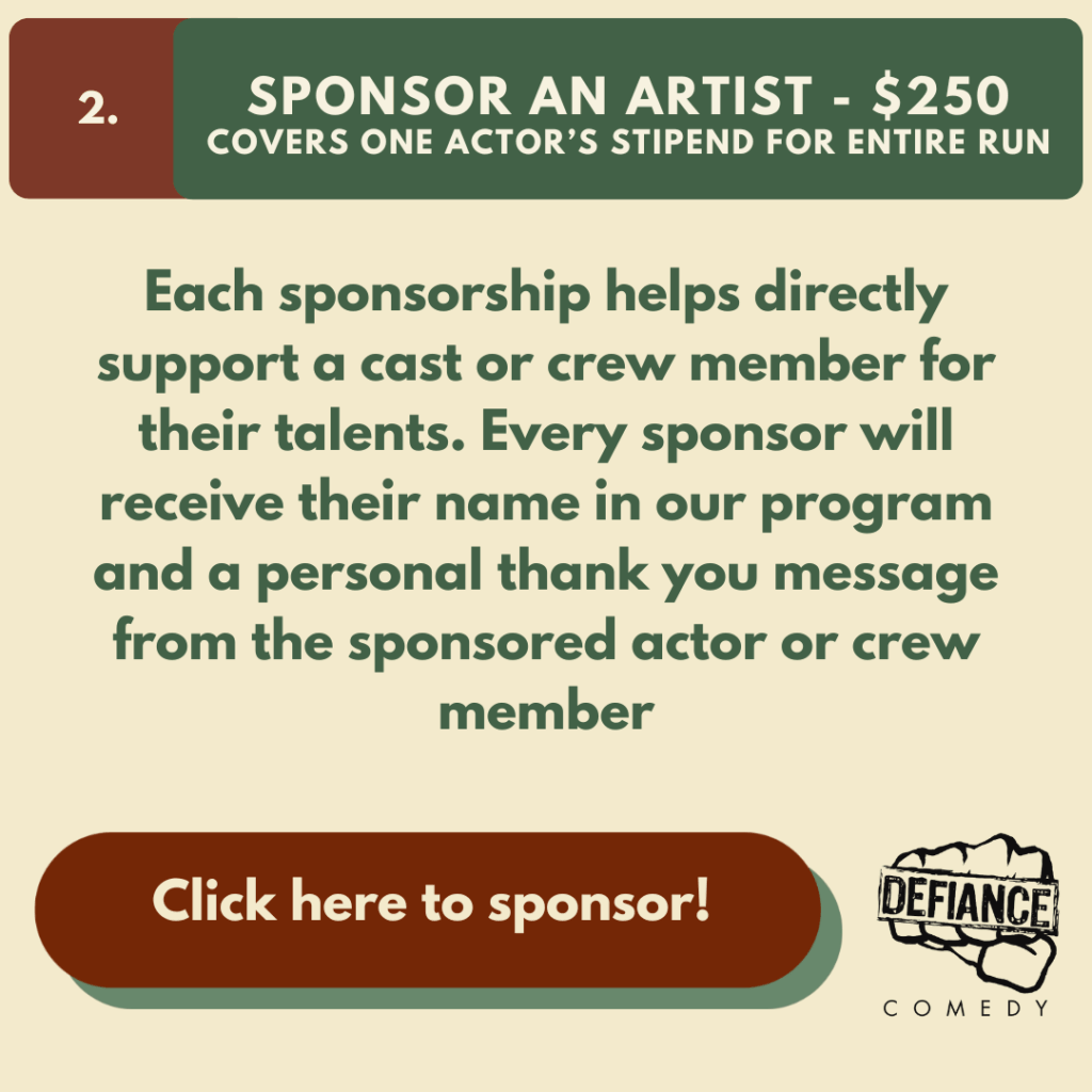 Psst. Want your business to sponsor one of our shows? Contact kramer@defiancecomedy.com